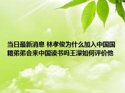 - 当日最新消息 林孝俊为什么加入中国国籍弟弟会来中国读书吗王濛如何评价他
