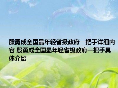 1、想必大家现在对于殷勇成全国最年轻省级政府一把手方面的信息都是比较想了解的吧,那么针对于殷勇成全国最年轻省级政府一把手方面的信息,小西自然是收集了一些相关方面的信息,那么如果您感兴趣的话,可以看下下面小西为大家收集到与殷勇成全国最年轻省级政府一把手相关的信息吧。
