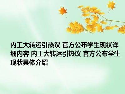 1、想必大家现在对于内工大转运引热议 官方公布学生现状方面的信息都是比较想了解的吧,那么针对于内工大转运引热议 官方公布学生现状方面的信息,小西自然是收集了一些相关方面的信息,那么如果您感兴趣的话,可以看下下面小西为大家收集到与内工大转运引热议 官方公布学生现状相关的信息吧。