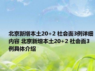 1、想必大家现在对于北京新增本土20+2 社会面3例方面的信息都是比较想了解的吧,那么针对于北京新增本土20+2 社会面3例方面的信息,小西自然是收集了一些相关方面的信息,那么如果您感兴趣的话,可以看下下面小西为大家收集到与北京新增本土20+2 社会面3例相关的信息吧。