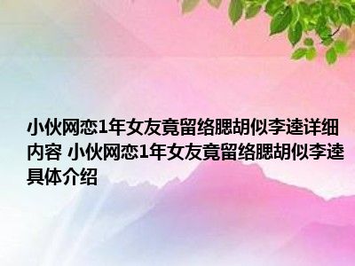 导读大家好,小太来为大家解答以上问题。小伙网恋1年女友竟留络腮胡似李逵很多人还不知道,现在让我们一起来看看吧!1、想必大家现在对于小伙网...