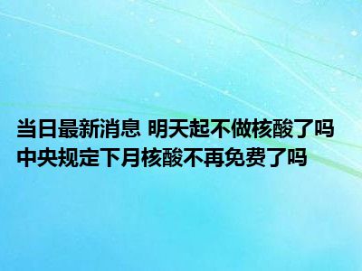 导读 明天起不做核酸了吗 中央规定下月核酸不再免费了吗现在是大家比较关注的,因为目前明天起不做核酸了吗 中央规定下月核酸不再免费了吗的...