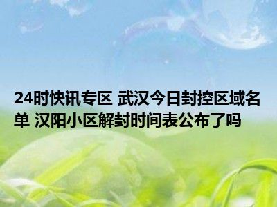 导读 今天关于24时快讯专区 武汉今日封控区域名单 汉阳小区解封时间表公布了吗?的热度相当高,大家目前都对于24时快讯专区 武汉今日封控区域...