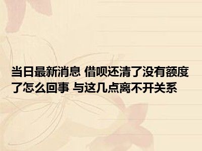 借呗还清了没有额度了怎么回事 与这几点离不开关系现在是大家比较关注的,因为目前借呗还清了没有额度了怎么回事 与这几点离不开关系的热度是相对比较高的,那么既然大家对此都比较感兴趣,小S也是特地到网上去查找了一些相关的信息,下面就由小S来把这些信息来分享给大家一起查阅吧。