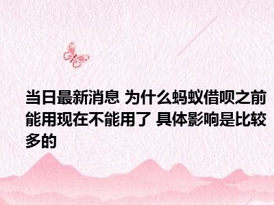- 当日最新消息 为什么蚂蚁借呗之前能用现在不能用了 具体影响是比较多的