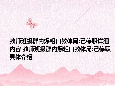 大家好,小太来为大家解答以上问题。教师班级群内爆粗口?教体局:已停职很多人还不知道,现在让我们一起来看看吧!