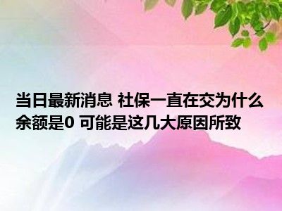 社保一直在交为什么余额是0 可能是这几大原因所致现在是大家比较关注的,因为目前社保一直在交为什么余额是0 可能是这几大原因所致的热度是相对比较高的,那么既然大家对此都比较感兴趣,小S也是特地到网上去查找了一些相关的信息,下面就由小S来把这些信息来分享给大家一起查阅吧。