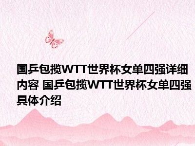 1、想必大家现在对于国乒包揽WTT世界杯女单四强方面的信息都是比较想了解的吧,那么针对于国乒包揽WTT世界杯女单四强方面的信息,小西自然是收集了一些相关方面的信息,那么如果您感兴趣的话,可以看下下面小西为大家收集到与国乒包揽WTT世界杯女单四强相关的信息吧。