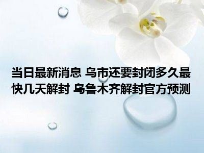 导读 乌市还要封闭多久最快几天解封 乌鲁木齐解封官方预测现在是大家比较关注的,因为目前乌市还要封闭多久最快几天解封 乌鲁木齐解封官方预...