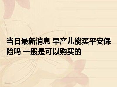 导读 早产儿能买平安保险吗 一般是可以购买的现在是大家比较关注的,因为目前早产儿能买平安保险吗 一般是可以购买的的热度是相对比较高的,...