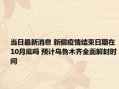 导读 新疆疫情结束日期在10月底吗 预计乌鲁木齐全面解封时间现在是大家比较关注的,因为目前新疆疫情结束日期在10月底吗 预计乌鲁木齐全面解...