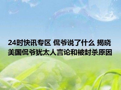 今天关于24时快讯专区 侃爷说了什么 揭晓美国侃爷犹太人言论和被封杀原因的热度相当高,大家目前都对于24时快讯专区 侃爷说了什么 揭晓美国侃爷犹太人言论和被封杀原因很关注,那么为此小编也是特地在网上找了一些关于24时快讯专区 侃爷说了什么 揭晓美国侃爷犹太人言论和被封杀原因的相关内容,那么接下来就分享给大家吧。