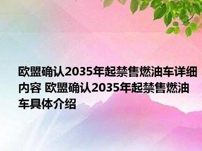 1、想必大家现在对于欧盟确认2035年起禁售燃油车方面的信息都是比较想了解的吧,那么针对于欧盟确认2035年起禁售燃油车方面的信息,小西自然是收集了一些相关方面的信息,那么如果您感兴趣的话,可以看下下面小西为大家收集到与欧盟确认2035年起禁售燃油车相关的信息吧。