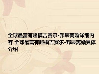 1、想必大家现在对于全球最富有超模吉赛尔·邦辰离婚方面的信息都是比较想了解的吧,那么针对于全球最富有超模吉赛尔·邦辰离婚方面的信息,小西自然是收集了一些相关方面的信息,那么如果您感兴趣的话,可以看下下面小西为大家收集到与全球最富有超模吉赛尔·邦辰离婚相关的信息吧。