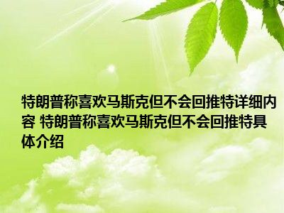 - 特朗普称喜欢马斯克但不会回推特详细内容 特朗普称喜欢马斯克但不会回推特具体介绍