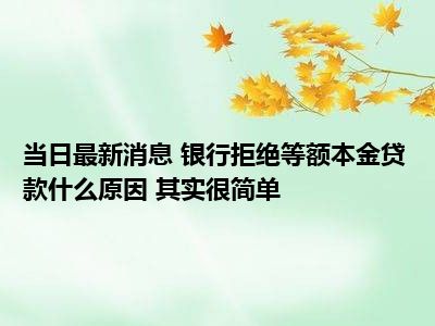 银行拒绝等额本金贷款什么原因 其实很简单!现在是大家比较关注的,因为目前银行拒绝等额本金贷款什么原因 其实很简单!的热度是相对比较高的,那么既然大家对此都比较感兴趣,小S也是特地到网上去查找了一些相关的信息,下面就由小S来把这些信息来分享给大家一起查阅吧。