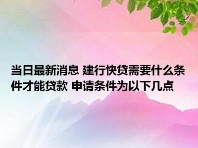 导读 建行快贷需要什么条件才能贷款 申请条件为以下几点现在是大家比较关注的,因为目前建行快贷需要什么条件才能贷款 申请条件为以下几点的...