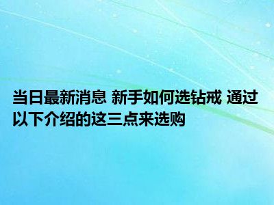 导读 新手如何选钻戒 通过以下介绍的这三点来选购现在是大家比较关注的,因为目前新手如何选钻戒 通过以下介绍的这三点来选购的热度是相对比...