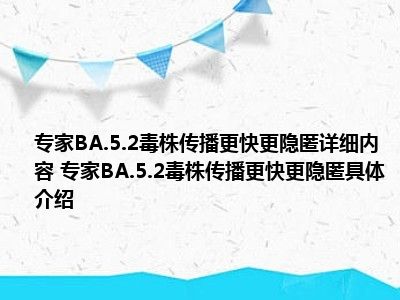1、想必大家现在对于专家:BA.5.2毒株传播更快更隐匿方面的信息都是比较想了解的吧,那么针对于专家:BA.5.2毒株传播更快更隐匿方面的信息,小西自然是收集了一些相关方面的信息,那么如果您感兴趣的话,可以看下下面小西为大家收集到与专家:BA.5.2毒株传播更快更隐匿相关的信息吧。