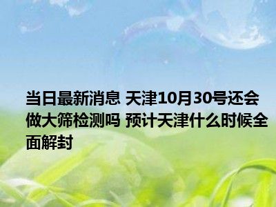 - 当日最新消息 天津10月30号还会做大筛检测吗 预计天津什么时候全面解封