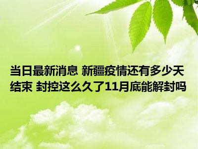 导读 新疆疫情还有多少天结束 封控这么久了11月底能解封吗现在是大家比较关注的,因为目前新疆疫情还有多少天结束 封控这么久了11月底能解封...