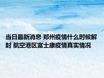- 24时快讯专区 郑州疫情什么时候解封 航空港区富士康疫情真实情况