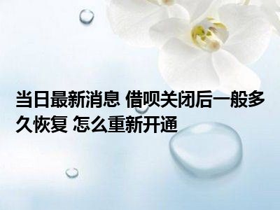 借呗关闭后一般多久恢复 怎么重新开通现在是大家比较关注的,因为目前借呗关闭后一般多久恢复 怎么重新开通的热度是相对比较高的,那么既然大家对此都比较感兴趣,小S也是特地到网上去查找了一些相关的信息,下面就由小S来把这些信息来分享给大家一起查阅吧。