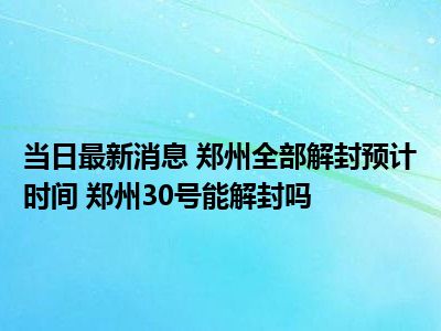 - 当日最新消息 郑州全部解封预计时间 郑州30号能解封吗