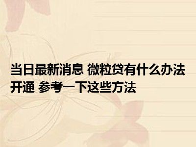 微粒贷其实,开通微粒贷的方法并不复杂的。保持良好的个人信用,平时多使用微信支付,已经多使用腾讯周边产品,还可以开通微众银行账户,这样对开通微粒贷有一定帮助。还有就是经常使用QQ或者微信转账,在腾讯商城里买东西等。