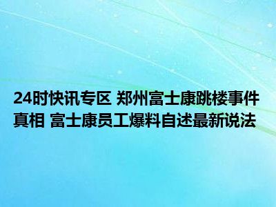 今天关于24时快讯专区 郑州富士康跳楼事件真相 富士康员工爆料自述最新说法的热度相当高,大家目前都对于24时快讯专区 郑州富士康跳楼事件真相 富士康员工爆料自述最新说法很关注,那么为此小编也是特地在网上找了一些关于24时快讯专区 郑州富士康跳楼事件真相 富士康员工爆料自述最新说法的相关内容,那么接下来就分享给大家吧。
