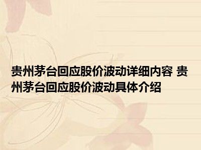 1、想必大家现在对于贵州茅台回应股价波动方面的信息都是比较想了解的吧,那么针对于贵州茅台回应股价波动方面的信息,小西自然是收集了一些相关方面的信息,那么如果您感兴趣的话,可以看下下面小西为大家收集到与贵州茅台回应股价波动相关的信息吧。