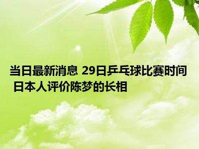 29日乒乓球比赛时间 日本人评价陈梦的长相现在是大家比较关注的,因为目前29日乒乓球比赛时间 日本人评价陈梦的长相的热度是相对比较高的,那么既然大家对此都比较感兴趣,小S也是特地到网上去查找了一些相关的信息,下面就由小S来把这些信息来分享给大家一起查阅吧。