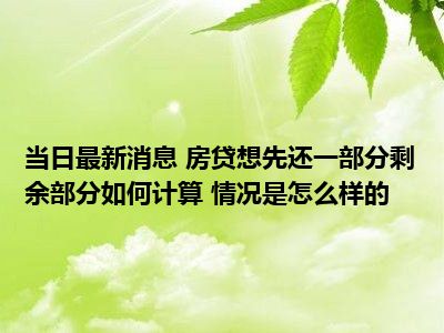 导读 房贷想先还一部分剩余部分如何计算 情况是怎么样的现在是大家比较关注的,因为目前房贷想先还一部分剩余部分如何计算 情况是怎么样的的...