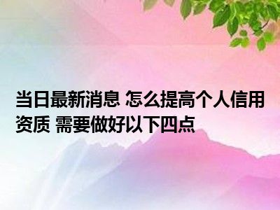 导读 怎么提高个人信用资质 需要做好以下四点现在是大家比较关注的,因为目前怎么提高个人信用资质 需要做好以下四点的热度是相对比较高的,...