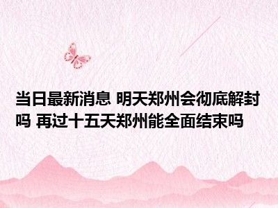 - 2022-10-2924时快讯专区 明天郑州会彻底解封吗 再过十五天郑州能全面结束吗