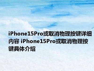 - iPhone15Pro或取消物理按键详细内容 iPhone15Pro或取消物理按键具体介绍