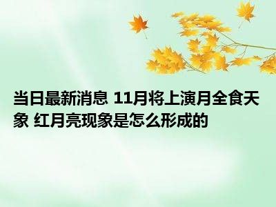 11月将上演月全食天象 红月亮现象是怎么形成的现在是大家比较关注的,因为目前11月将上演月全食天象 红月亮现象是怎么形成的的热度是相对比较高的,那么既然大家对此都比较感兴趣,小S也是特地到网上去查找了一些相关的信息,下面就由小S来把这些信息来分享给大家一起查阅吧。