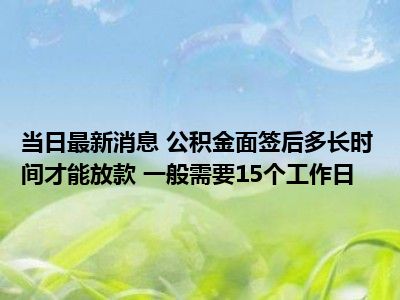 - 当日最新消息 公积金面签后多长时间才能放款 一般需要15个工作日
