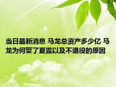 马龙总资产多少亿 马龙为何娶了夏露以及不退役的原因现在是大家比较关注的,因为目前马龙总资产多少亿 马龙为何娶了夏露以及不退役的原因的热度是相对比较高的,那么既然大家对此都比较感兴趣,小S也是特地到网上去查找了一些相关的信息,下面就由小S来把这些信息来分享给大家一起查阅吧。