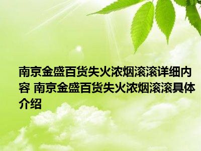 1、想必大家现在对于南京金盛百货失火浓烟滚滚方面的信息都是比较想了解的吧,那么针对于南京金盛百货失火浓烟滚滚方面的信息,小西自然是收集了一些相关方面的信息,那么如果您感兴趣的话,可以看下下面小西为大家收集到与南京金盛百货失火浓烟滚滚相关的信息吧。
