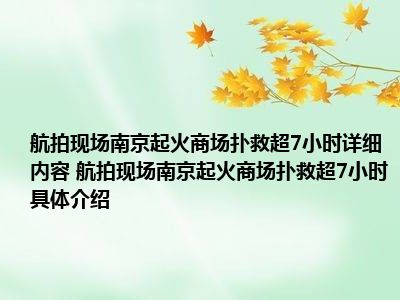 1、想必大家现在对于航拍现场:南京起火商场扑救超7小时方面的信息都是比较想了解的吧,那么针对于航拍现场:南京起火商场扑救超7小时方面的信息,小西自然是收集了一些相关方面的信息,那么如果您感兴趣的话,可以看下下面小西为大家收集到与航拍现场:南京起火商场扑救超7小时相关的信息吧。
