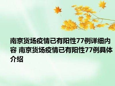 1、想必大家现在对于南京货场疫情已有阳性77例方面的信息都是比较想了解的吧,那么针对于南京货场疫情已有阳性77例方面的信息,小西自然是收集了一些相关方面的信息,那么如果您感兴趣的话,可以看下下面小西为大家收集到与南京货场疫情已有阳性77例相关的信息吧。