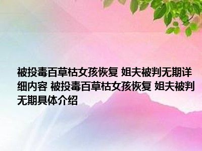 导读 大家好,小太来为大家解答以上问题。被投毒百草枯女孩恢复 姐夫被判无期很多人还不知道,现在让我们一起来看看吧!1、想必大家现在对于被...