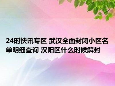 - 24时快讯专区 武汉全面封闭小区名单明细查询 汉阳区什么时候解封