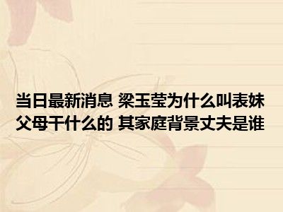 导读 梁玉莹为什么叫表妹父母干什么的 其家庭背景丈夫是谁现在是大家比较关注的,因为目前梁玉莹为什么叫表妹父母干什么的 其家庭背景丈夫是...