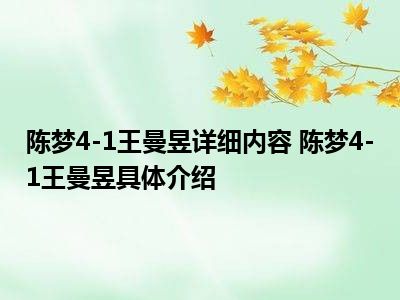 1、想必大家现在对于陈梦4-1王曼昱方面的信息都是比较想了解的吧,那么针对于陈梦4-1王曼昱方面的信息,小西自然是收集了一些相关方面的信息,那么如果您感兴趣的话,可以看下下面小西为大家收集到与陈梦4-1王曼昱相关的信息吧。