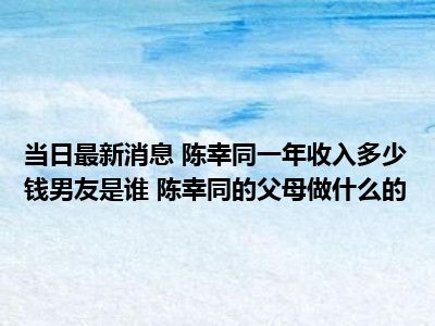 - 当日最新消息 陈幸同一年收入多少钱男友是谁 陈幸同的父母做什么的