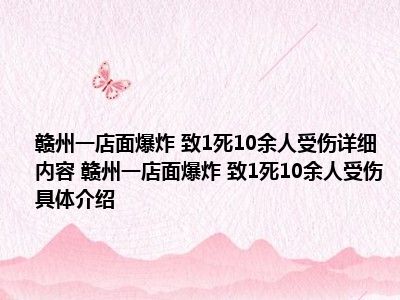 1、想必大家现在对于赣州一店面爆炸 致1死10余人受伤方面的信息都是比较想了解的吧,那么针对于赣州一店面爆炸 致1死10余人受伤方面的信息,小西自然是收集了一些相关方面的信息,那么如果您感兴趣的话,可以看下下面小西为大家收集到与赣州一店面爆炸 致1死10余人受伤相关的信息吧。
