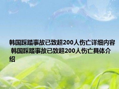 - 韩国踩踏事故已致超200人伤亡详细内容 韩国踩踏事故已致超200人伤亡具体介绍