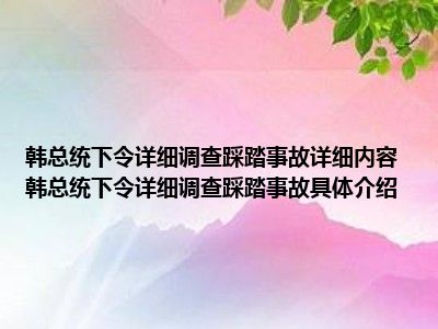 1、想必大家现在对于韩总统下令详细调查踩踏事故方面的信息都是比较想了解的吧,那么针对于韩总统下令详细调查踩踏事故方面的信息,小西自然是收集了一些相关方面的信息,那么如果您感兴趣的话,可以看下下面小西为大家收集到与韩总统下令详细调查踩踏事故相关的信息吧。